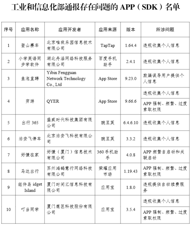 通报称,近期组织第三方检测机构进行抽查,共发现24款App及SDK存在侵害用户权益行为,华林优配登山赛车、穷游、出行365等在列。