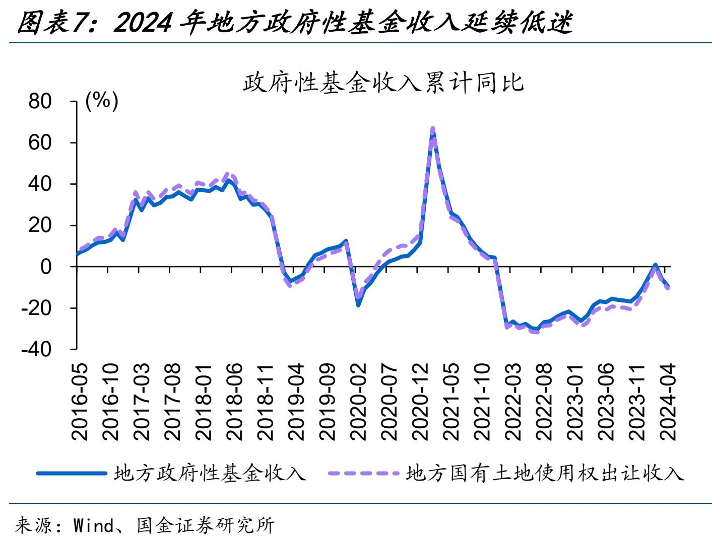 赵伟表示,4月地方土地出让收入继续下滑,叠加专项债发行规模大幅低于2023年同期,使得政府性基金支出增速降幅走阔,拖累广义财政支出力度。当前,5月、6月各地专项债发行计划已明显放量,超长期特别国债也已处于发行过程中,或对后续政府性基金支出形成支撑。